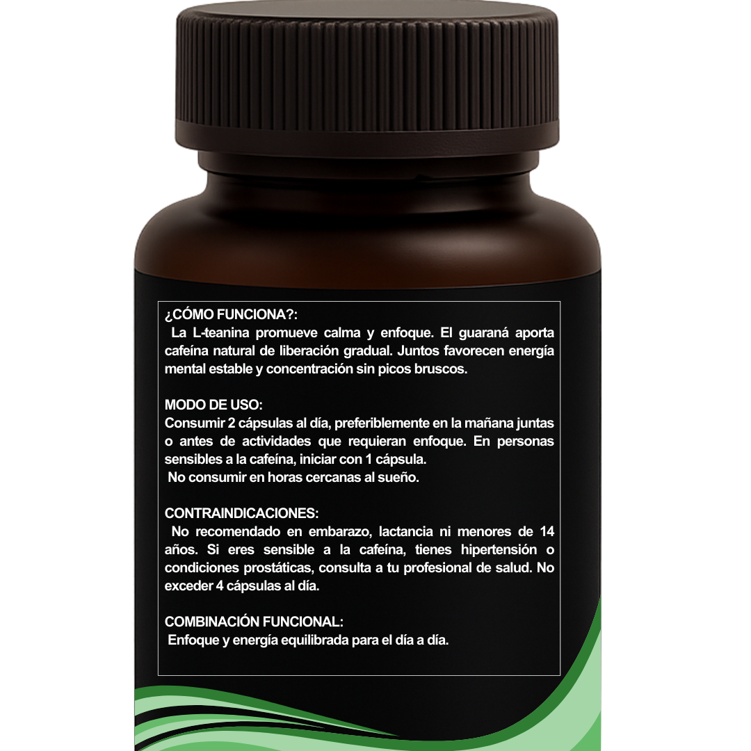 L-Teanina + Guaraná | Cafeína Natural para Enfoque y Energía Estable